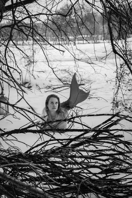 Tori Hoffmeister, a dancer, was transformed into a mermaid for the production BIG FISH at Artes de la Rosa in Fort Worth.